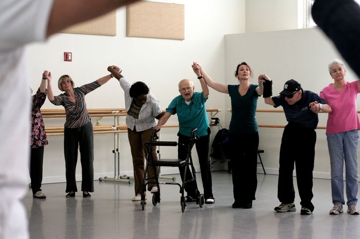 Aula de danças sênior com movimentos suaves e controlados;
